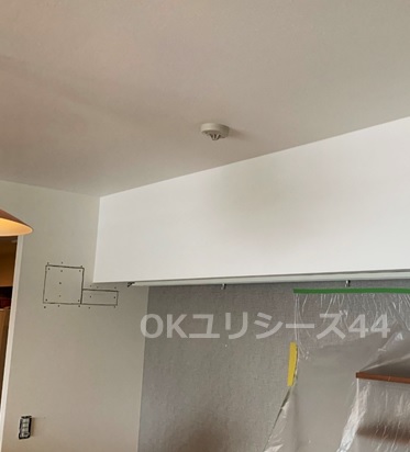 間接照明レール設置に伴い梁部分クロス貼替。