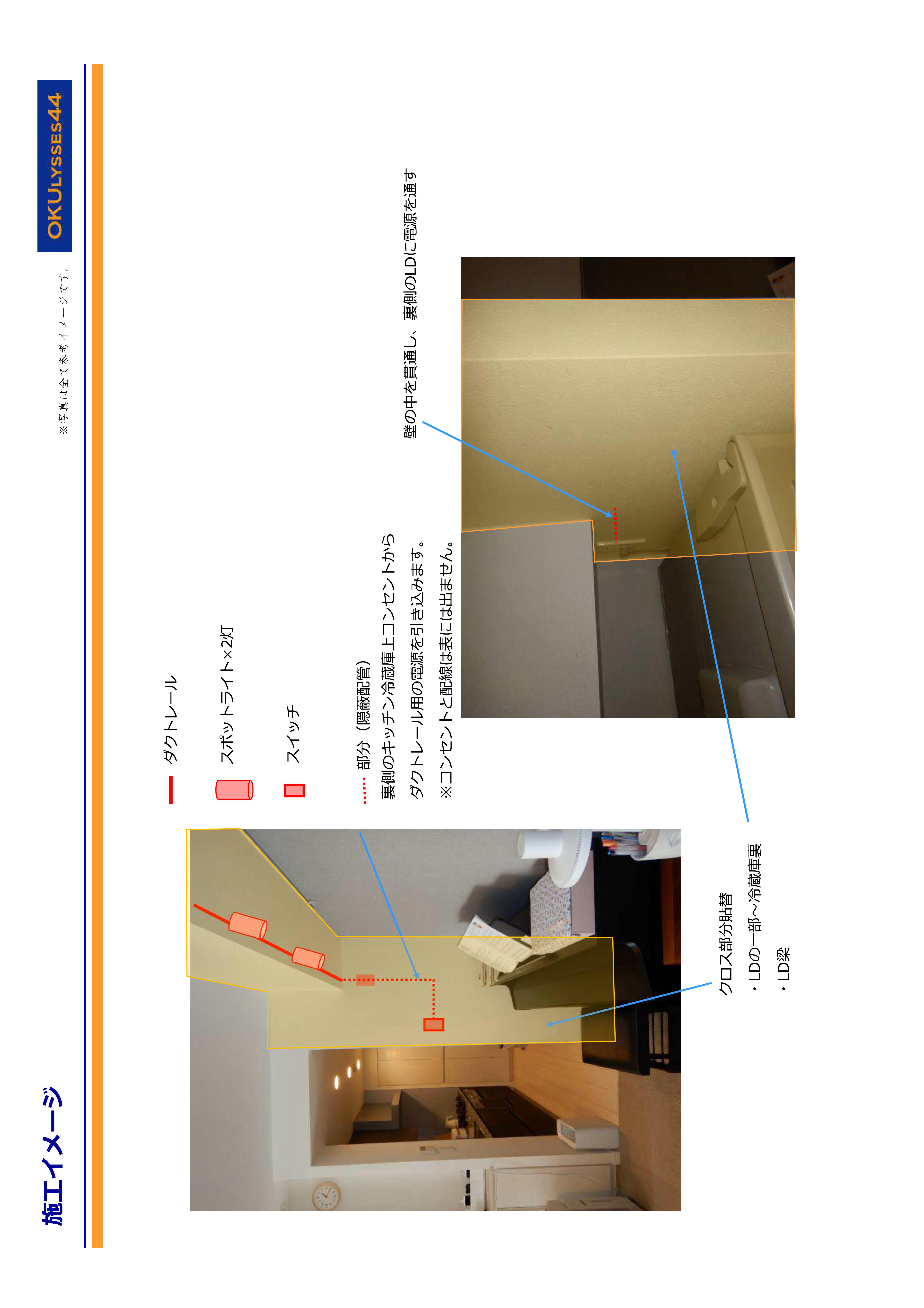 新規照明器具取付(スイッチ新設)とクロス貼替の施工をさせて頂きました。