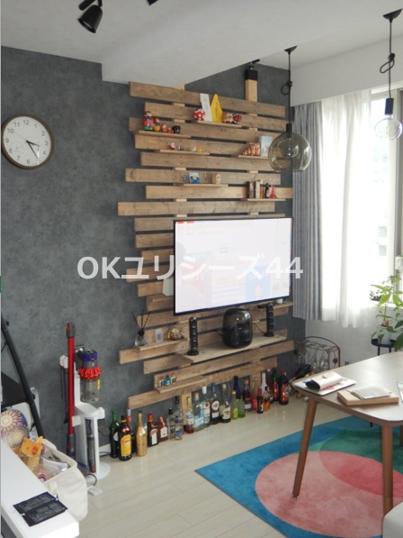 今回の工事は住みながらの工事でした。テレビ背面の壁面に設置された家具など、一旦全て家具を移動して施工しました。