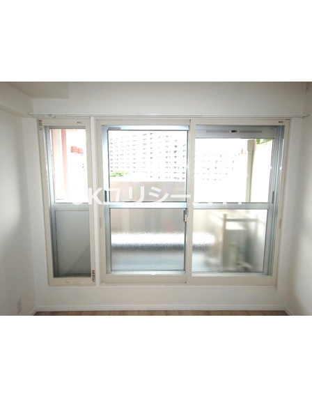 枠色は全てホワイト、ガラスは一般複層ガラスで、ベランダに面したリビングダイニングと子供部屋は透明をお選びいただきました(主寝室のみ型ガラス)。また主寝室には目隠し用に内窓用のブラインドを取付けました。