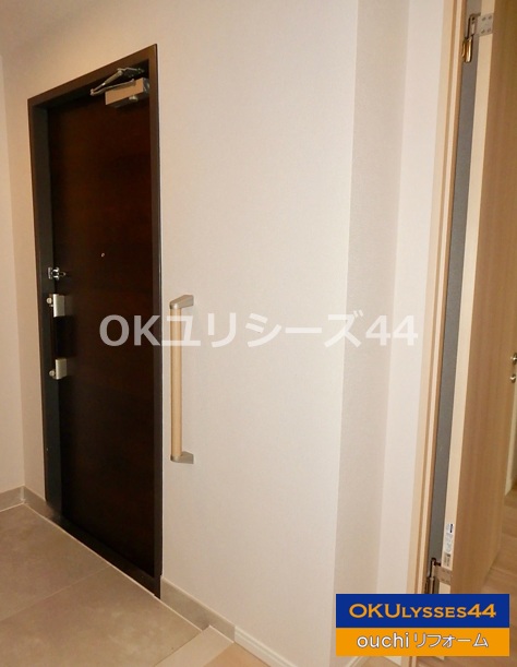 玄関に手すりがありませんでしたが、60代のK様は先の事を考えられ、今回のリフォームのタイミングで縦型手すりの取り付けをご希望されました。