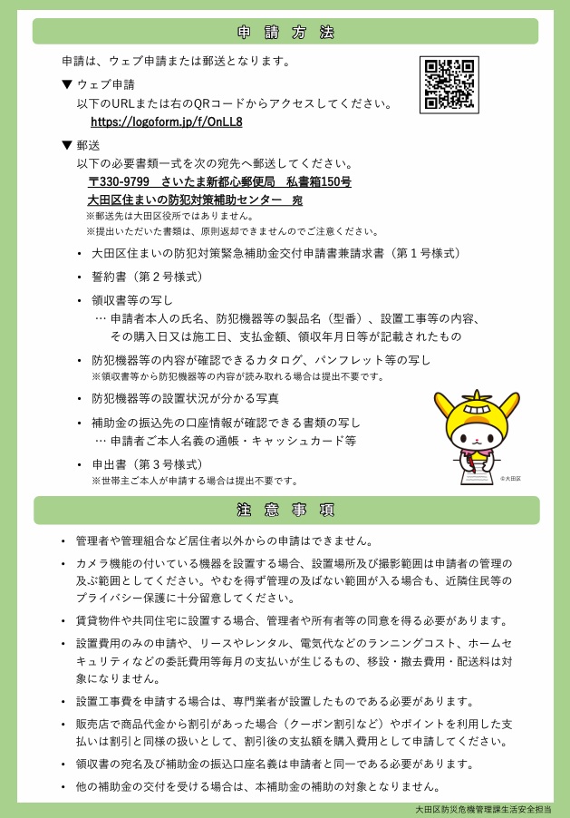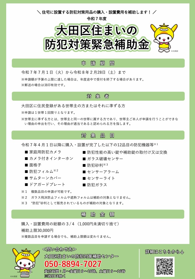 令和7年度大田区住まいの防犯対策緊急補助金のお知らせ