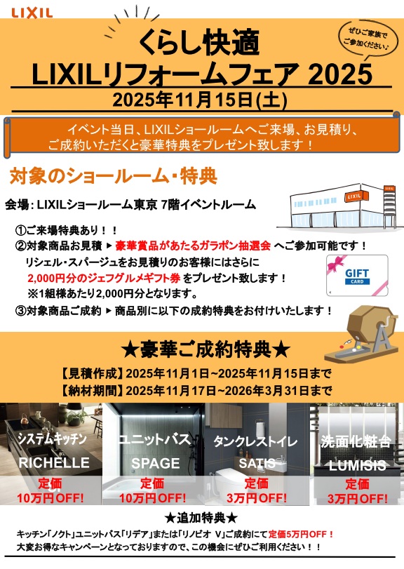 LIXILショールーム東京にて「くらし快適LIXILリフォームフェア2025」が開催されます!