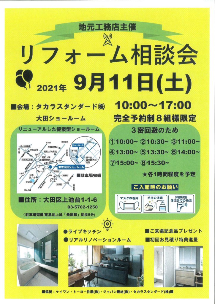 タカラスタンダード 大田ショールームにてリフォーム相談会を開催いたします!!